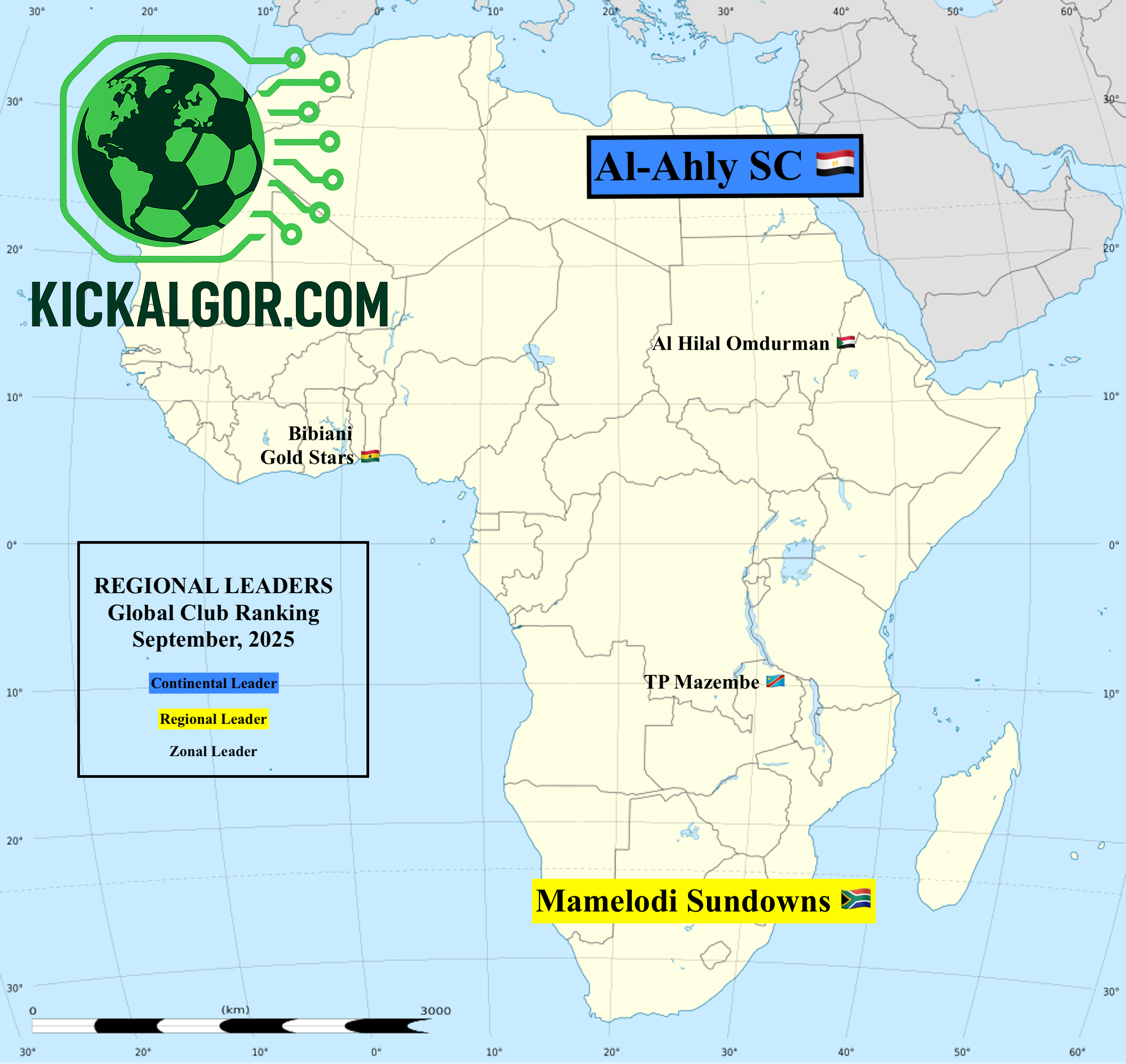 - In West Africa, Bibiani Gold Stars 🇬🇭, named the region’s best club in June, still leads the pack.