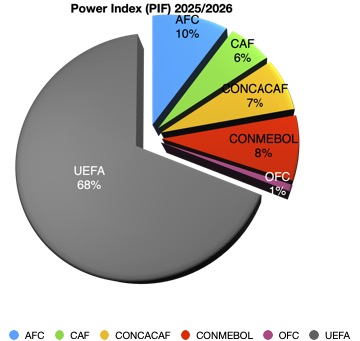 The Power Index of Federation (PIF) is the primary metric used in the KA System, calculated as a percentage. It reflects the overall strength and attraction of a continent from the viewpoint of club football (soccer).
