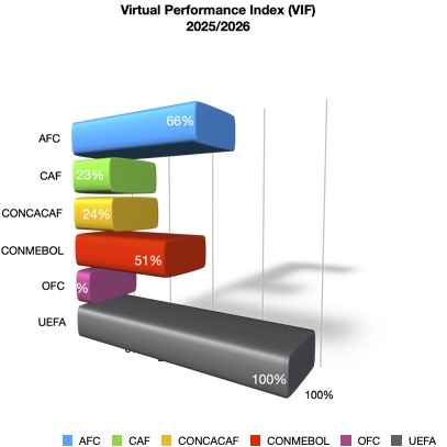 The VIF (Virtual Performance Index of Federation ) indicates the growth potential of club football on a continent in the long term.